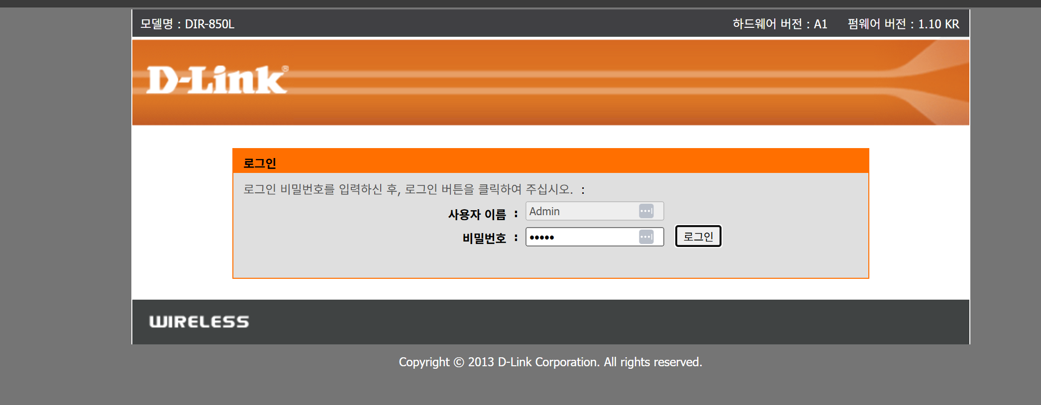 dir-850lw 초기 설정 비밀번호 입력 후 로그인 안되네요.